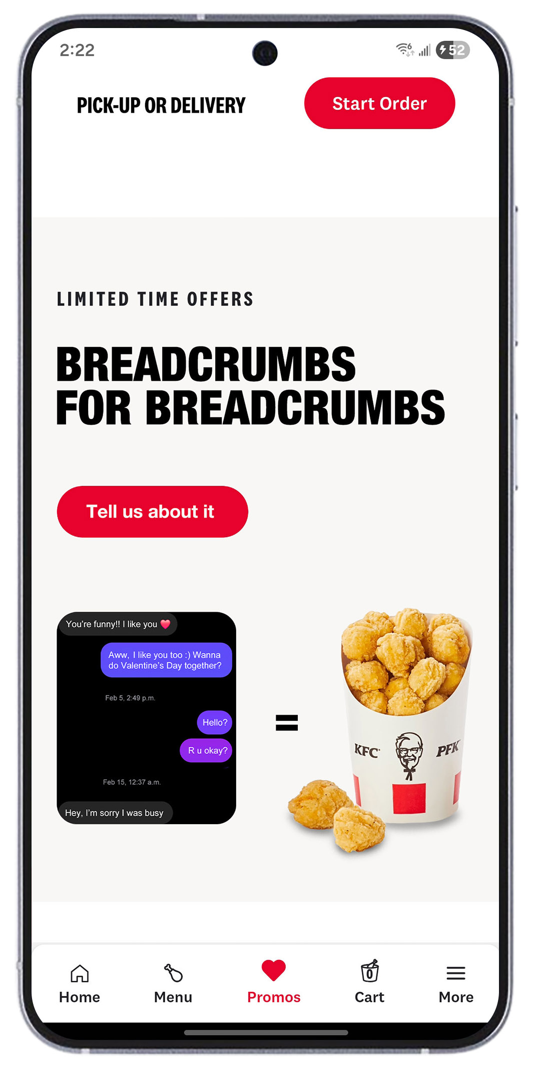 KFC App — Promos Page and DMs